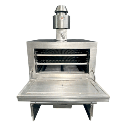 • Horno a carbón 100% fabricado en acero inoxidable. • Regulación y enfriamiento de humo con sistema de control regulado,