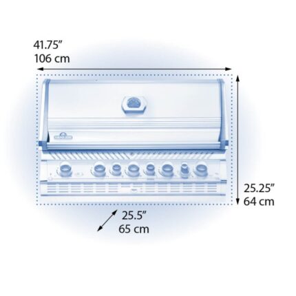 Una cocina gourmet al aire libre merece tener una hermosa parrilla. La parrilla de gas propano integrada Prestige PRO™ 665 con quemador trasero infrarrojo cuenta con siete quemadores para asar felizmente. El resistente acero inoxidable tiene detalles en cromo que brindan lujo y durabilidad. Utilice su parrilla después de que oscurezca con las perillas de control NIGHT LIGHT™ de LED Spectrum, que poseen opciones de colores casi ilimitadas. Además, la función SafetyGlow enciende las luces de color rojo cuando un quemador está en uso. Sepa qué quemadores están encendidos para poder obtener el sellado perfecto o la temperatura de cocción indirecta ideal. El rendimiento similar al del horno de esta parrilla le permite hornear y asar con facilidad y sellar a fuego alto; el quemador trasero prepara deliciosas comidas asadas en un abrir y cerrar de ojos. Sabrá que está usando un producto de Napoleon con las rejillas WAVE™ icónicas y la iluminación por proximidad. de El tubo de ahumador integrado y el quemador especial pueden incluso convertir esta parrilla en un ahumador, mientras que las luces interiores le permiten asar en la oscuridad. Perfecta y profesional, la tapa de parrilla integrada PRO™ 665 es la parrilla perfecta para su cocina gourmet al aire libre. 86.000 BTU