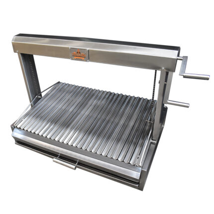 Asador a carbón con rodizio en acero inoxidable con sistema de rotación manual y amplia capacidad de cocción 🔥. Incluye bandeja recolectora, repisa inferior y ruedas para mayor comodidad y practicidad. 🍖