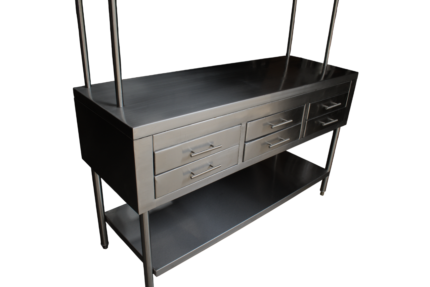 Ideal para optimizar espacios de trabajo gracias a su diseño funcional, resistente y fácil de limpiar. Perfecta para cocinas industriales, talleres o zonas de preparación que requieren organización y durabilidad.