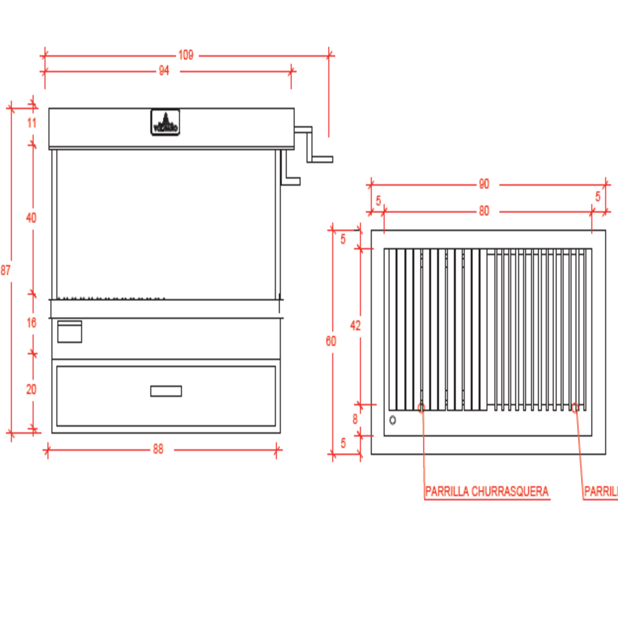 Asador Empotrable Grande con Caja China