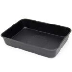 La bandeja de goteo rectangular Big Green Egg tiene una superficie antiadherente fácil de limpiar y tiene el logotipo de Big Green Egg grabado en relieve en el fondo de la bandeja. La bandeja de goteo rectangular funciona perfectamente con la rejilla en V para cocinar pavo, asados, pollos y otros cortes de carne más grandes.