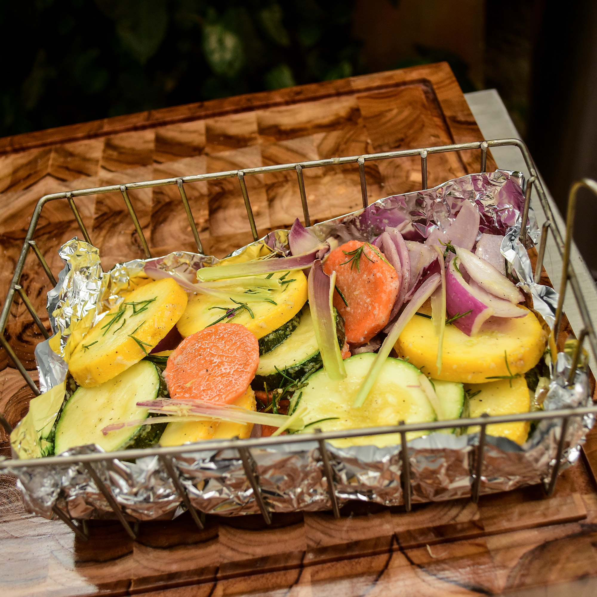 Es el accesorio ideal para darle un toque especial a tus verduras. Puedes poner en ella cebolla, tomate, piña, pimentones, explorar tu creatividad con un espectácular lomo al trapo, entre otros. Además, en caso de que tus cortes se caigan de los ganchos, éste accesorio también evita que tengan contacto con lo que uses como aislante para la grasa (como agua, arena o sal). Tamaño recomendado para el barril Mercury.