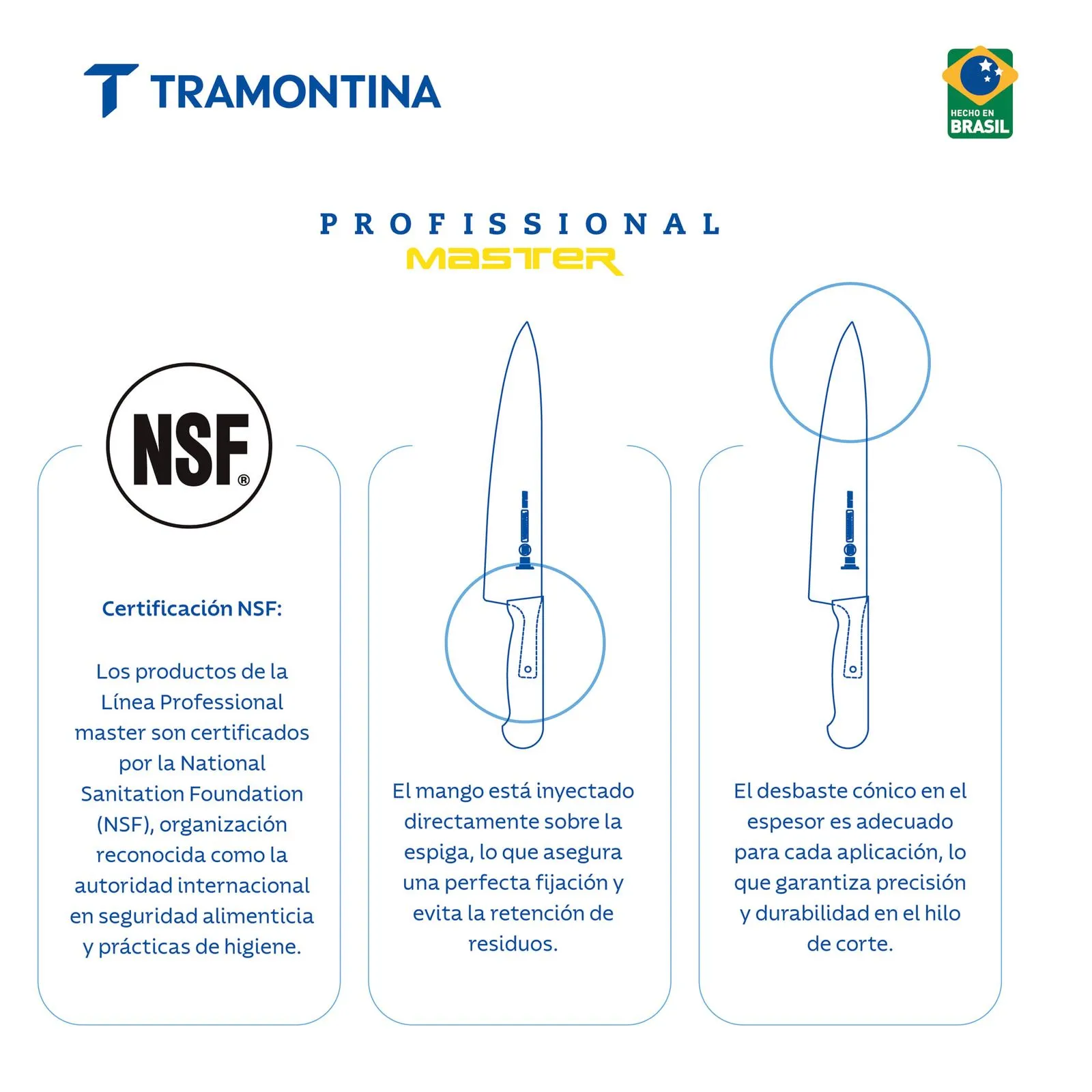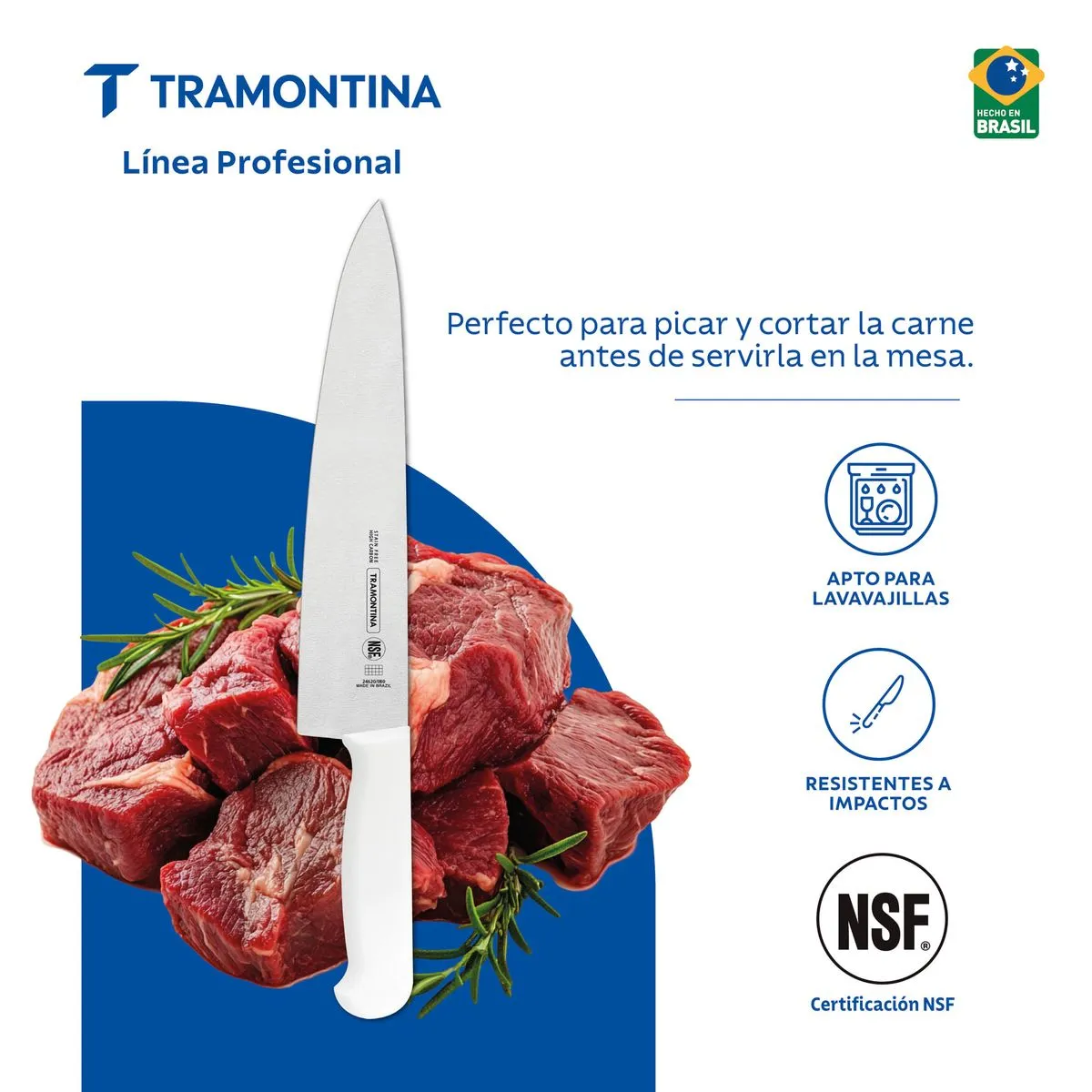 Para usted, que aprecia los productos prácticos y eficientes, el cuchillo para carne Tramontina Profissional con lámina de acero inoxidable y mango de polipropileno blanco con protección antimicrobiana de 10 pulgadas es el ideal. El filo posee una alta durabilidad y resistencia gracias a que está producido en acero inoxidable con tratamiento térmico, el cual ofrece un corte fácil y preciso. Además, el mango de polipropileno es ideal para combinar con diversos ambientes y ofrecerles el encanto que su comida merece. ¡Para practicidad y protección, cuente con los productos Tramontina!