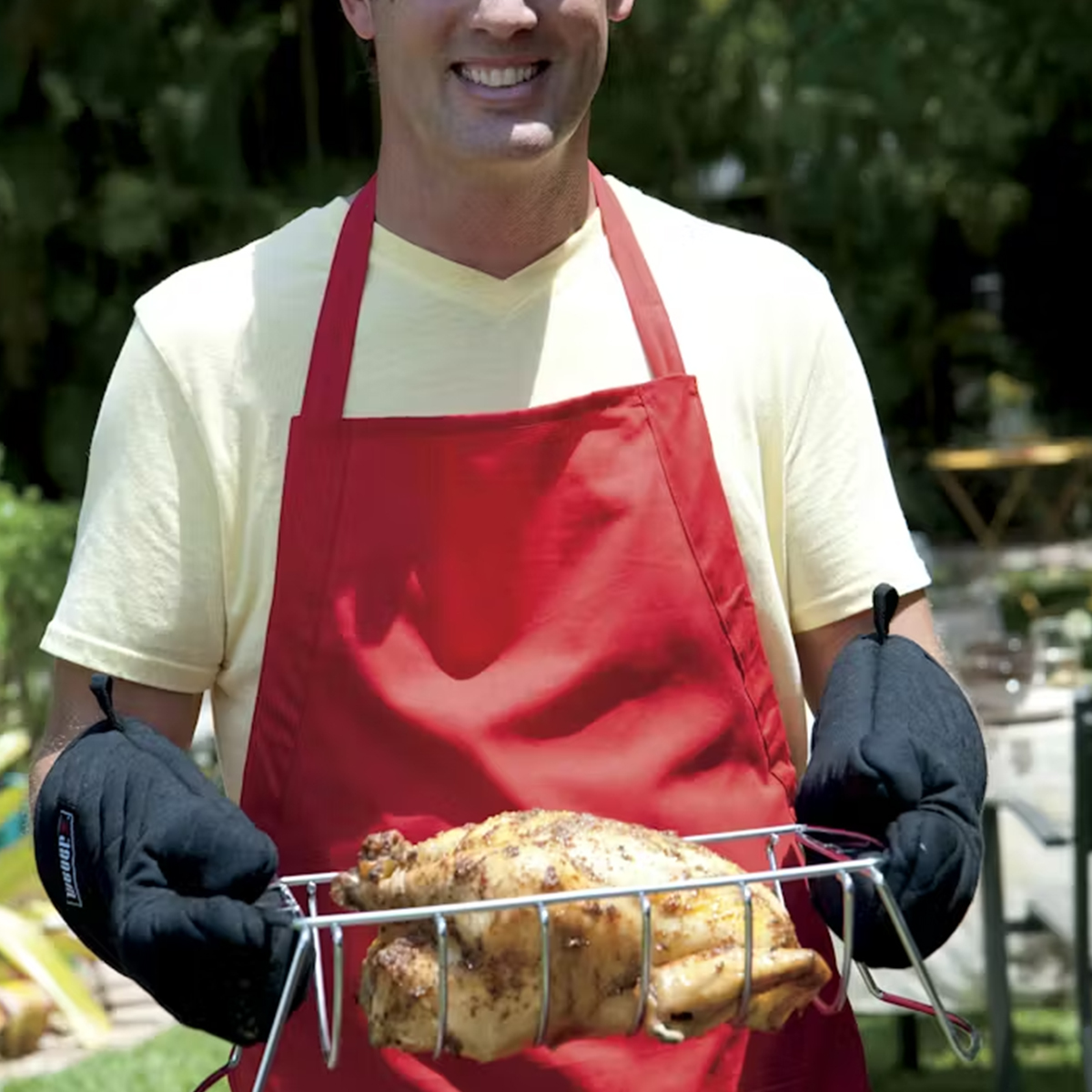 La comida hablará por sí sola, ¿pero por qué no meterte tú también en el papel? Saca a la luz el maestro parrillero que llevas dentro y siéntete como un profesional con este Delantal Weber. Los profundos bolsillos te permiten colgar tus herramientas de parrilla esenciales y el cuello es ajustable para que te quede perfecto.