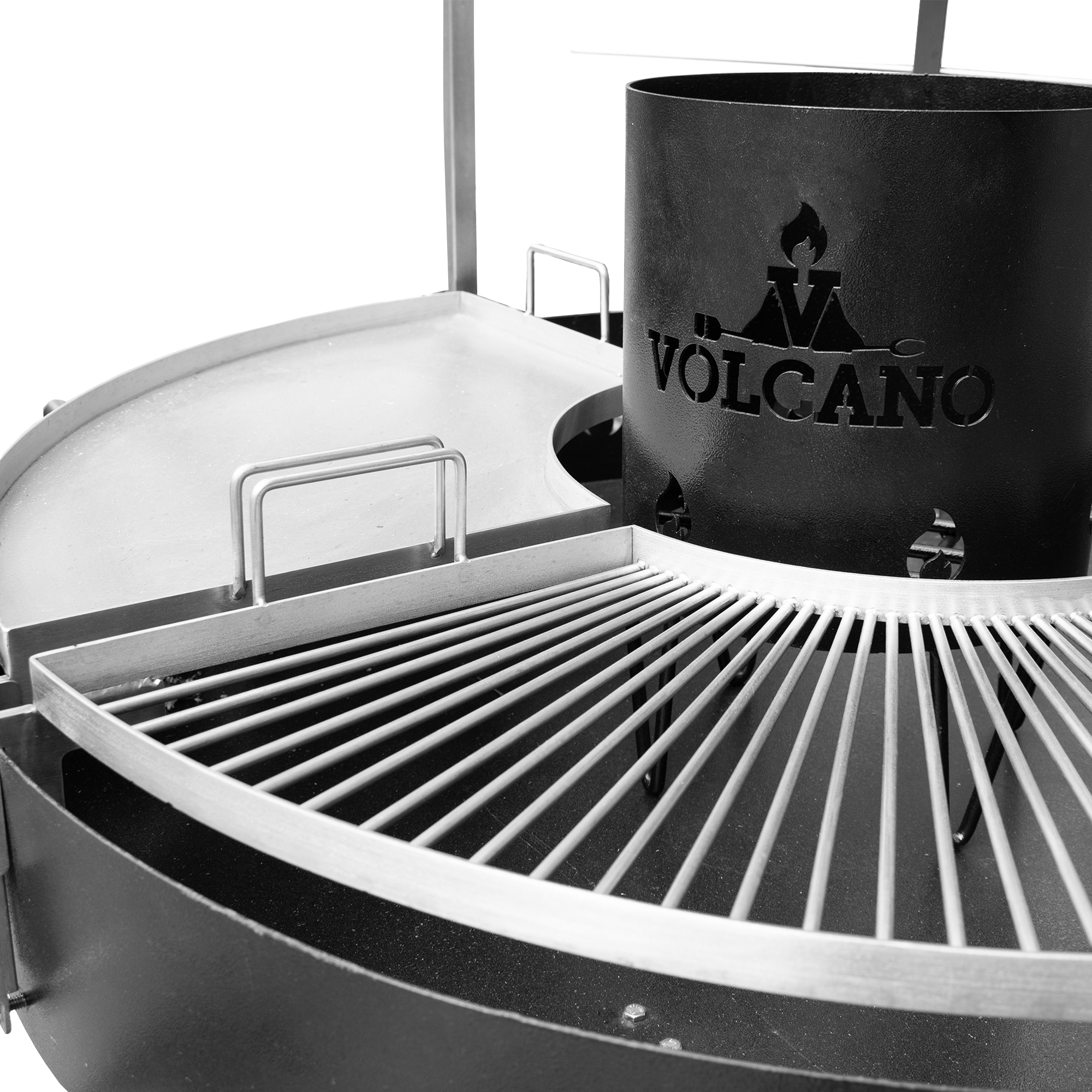 Cuenta con una parrilla circular amplia que permite cocinar múltiples alimentos al mismo tiempo, junto con zonas especializadas que brindan versatilidad en la cocción. Incorpora un sistema central para el manejo del fuego, ideal para distribuir el calor de manera uniforme y lograr resultados perfectos en cada preparación.