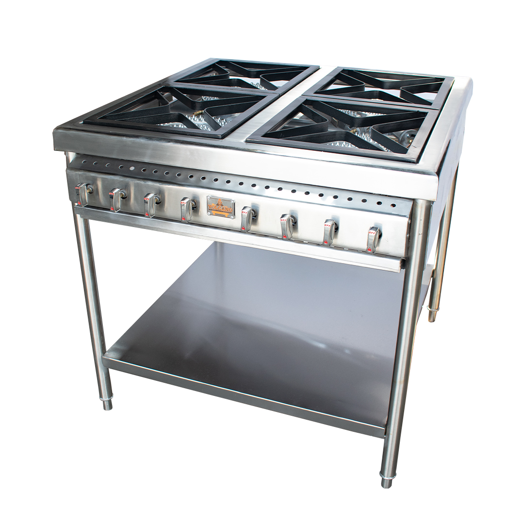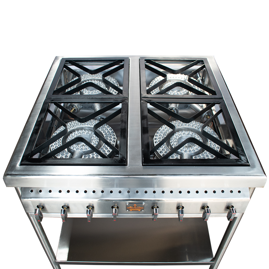 La Estufa Industrial 4 Puestos está diseñada para ofrecer máxima eficiencia y desempeño en entornos exigentes como restaurantes, cocinas industriales y negocios gastronómicos. Fabricada en acero inoxidable, proporciona alta resistencia al calor, durabilidad y facilidad de limpieza, garantizando un uso prolongado y confiable.