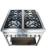 Estufa industrial de 4 puestos en acero inoxidable, potente, resistente y perfecta para un alto rendimiento en cocinas profesionales.