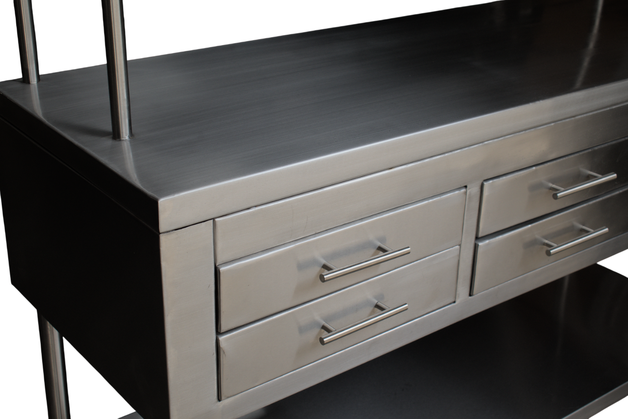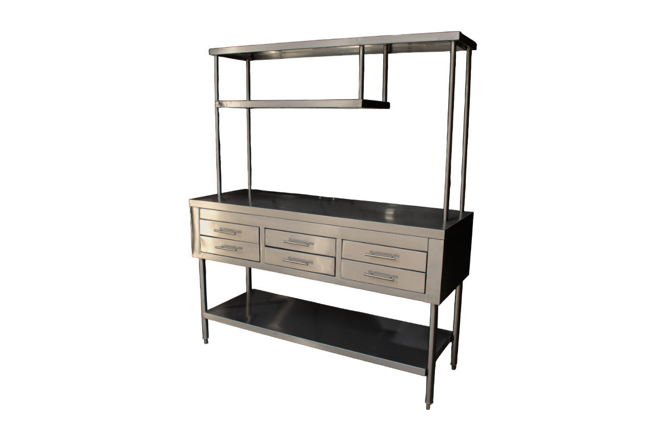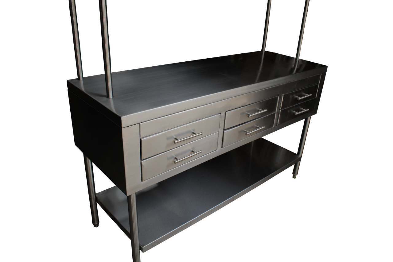 Mesa de trabajo en Acero Inoxidable Tipo Estantería con 6 Cajones